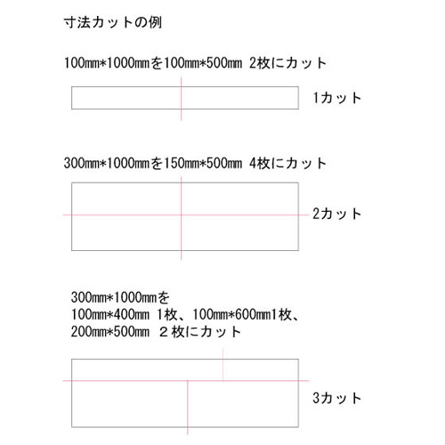 オプションでご指定のサイズでカットいたします。(1カットは無料です、2カット以上は1カットごとに200円(税別))